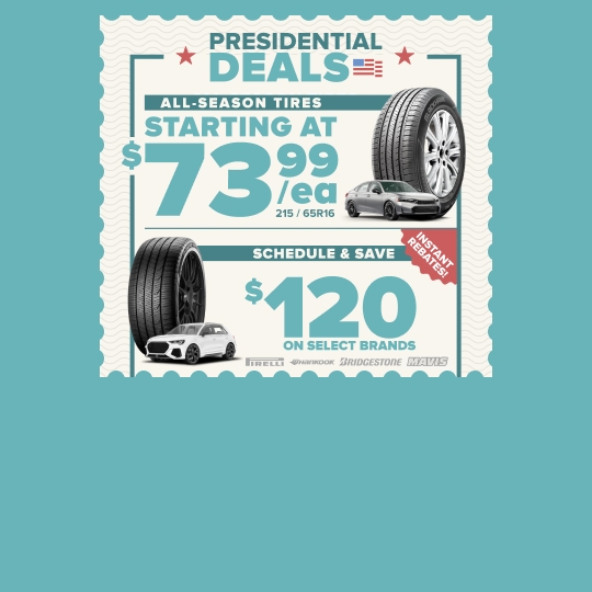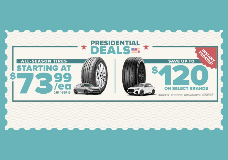 Take advantage of our huge President's Day auto service and tire deals this year, including $140 off brakes, $20 off oil changes, and up to $220 off a set of 4 tires. Book your holiday service online today and save big at a Mavis near you!