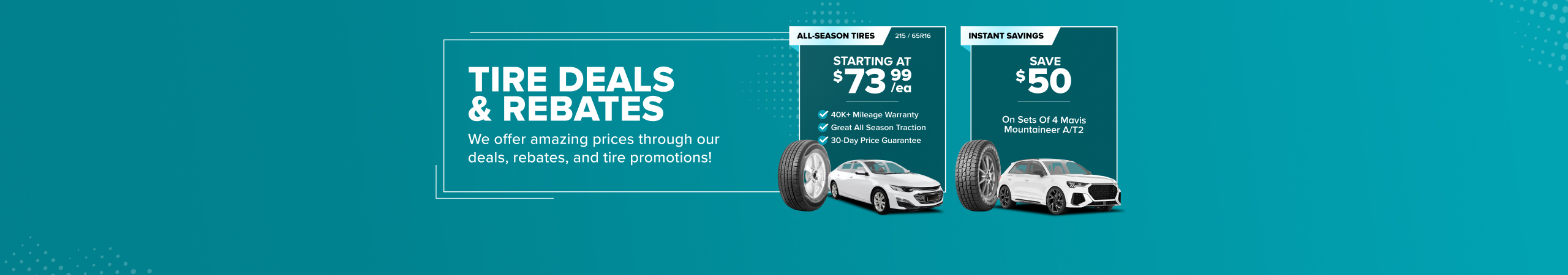 On the rare occasion that you find tires sales at a lower price, just submit the ad, tire size, and brand to our Price Buster Squad. You'll be shown available tire deals at the same price. Take advantage of our exclusive tire sales and get the best deals on high-quality tires for your vehicle. Save more with our unbeatable tire sales today!