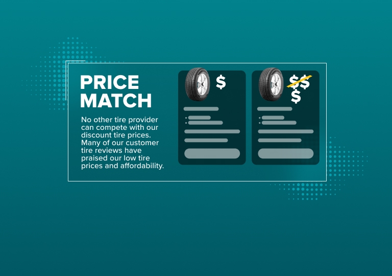 *Mavis Discount Tire can beat verifiable competitor price quotes on new, in-stock tires with the same brand, model, size, and construction. We cannot match the price on closeouts or clearance items, member pricing, sale pricing, promotional codes, instant rebates or purchases made through national accounts. We also cannot match the price offered by a third-party seller. Price comparisons include competitors' shipping/delivery and handling charges. Purchases are limited to normal retail quantities and retail sales transactions, and a price match cannot be combined with any warranty transaction. If a minimum purchase quantity is required to reach a qualifying competitor’s lower price, you must purchase the same minimum quantity from Mavis Discount Tire. We reserve the right to review any competitor’s advertisement for accuracy of the price and stock availability.